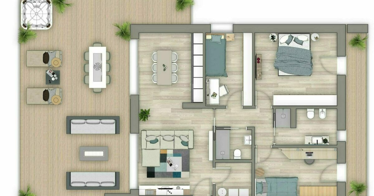 I contenuti grafici quali render e virtual tour potrebbero non coincidere con l'esatta conformazione della singola unità.